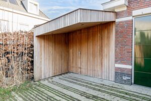 Naast parkeren op je eigen oprit is in de straat voldoende parkeergelegenheid voor bezoekers. Op de oprit bevindt zich bovendien een laadpaal, zodat je de auto gemakkelijk thuis kunt opladen. Vanuit de oprit is directe toegang tot de ruime aangebouwde berging van circa 20 m², die bovendien ook bereikbaar is vanuit de achtertuin. Deze praktische ruimte is ideaal voor het stallen van fietsen en het opbergen van spullen. Dankzij de twee grote lichtkoepels valt hier aangenaam daglicht naar binnen, waardoor de berging verrassend licht en prettig in gebruik is.