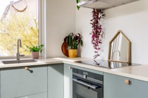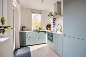 – Moderne keuken met veel kastruimte en inbouwapparatuur;