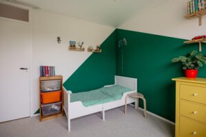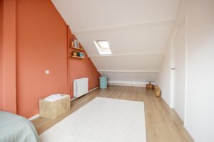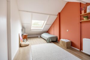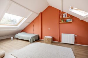 De trap naar de tweede verdieping zorgt voor een echte verrassing wat betreft ruimte en mogelijkheden. Op de ruime voorzolder is aan de achterzijde een wasmachine/droger aansluiting gemaakt. Hier vind je ook de CV-installatie (2025). De ruimte aan de voorkant leent zich uitstekend om een goede functie aan te geven, bijvoorbeeld als werkplek of bergruimte. De vijfde slaapkamer maakt deze verdieping compleet. De kamer loopt over de gehele lengte van het huis, een mooi formaat. De gehele verdieping is afgewerkt met een keurige laminaatvloer.