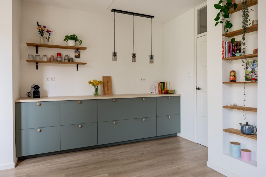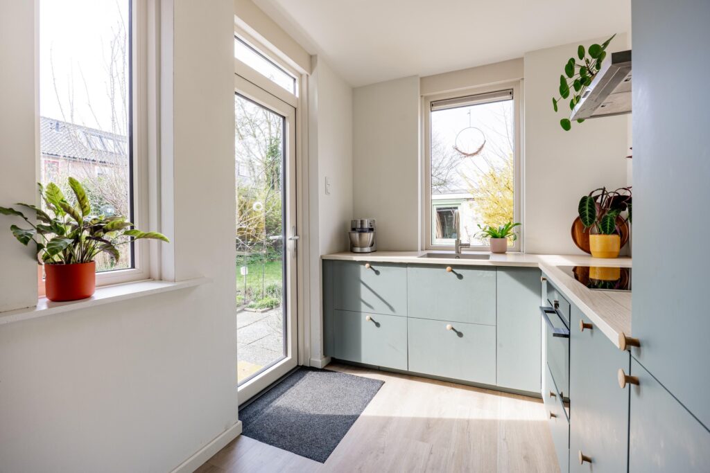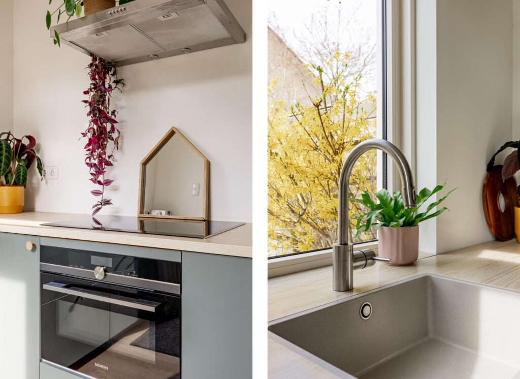 – Moderne keuken met veel kastruimte en inbouwapparatuur;