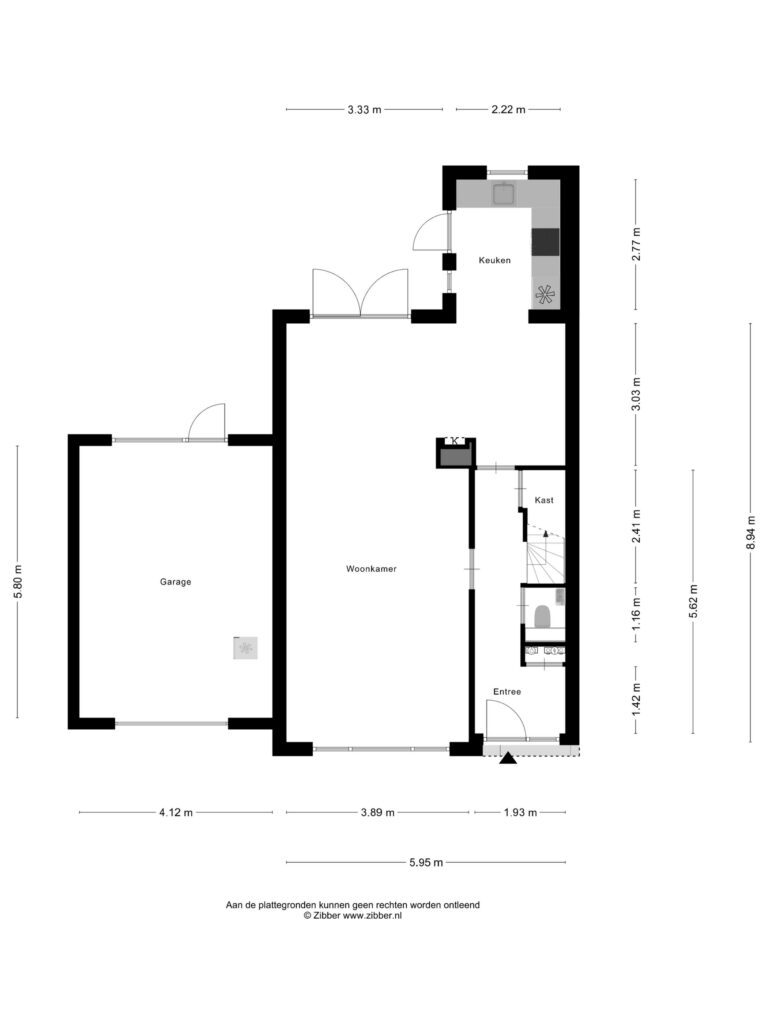 – Grote garage en extra berging met directe achterom;
