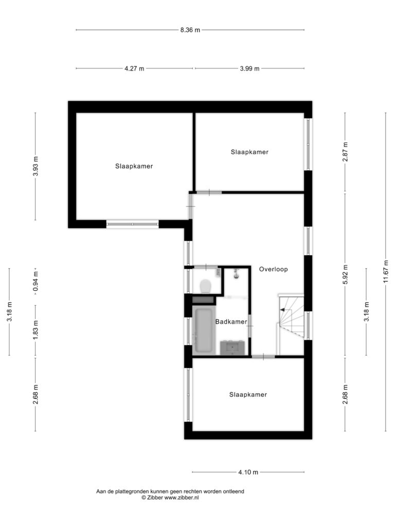 De tweede en derde slaapkamer liggen aan de andere zijde van de overloop. Beide kamers zijn ruim van opzet en meten respectievelijk circa 17 m² en 11 m², waardoor ze veelzijdig in te richten zijn, bijvoorbeeld als slaapkamer, werk- of hobbyruimte.