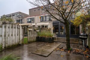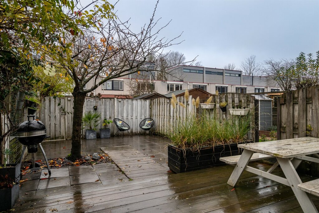 De tuin is gelegen op het Noorden. Omdat er verschillende terrassen zijn, kun je hier heerlijk toeven. De berging bevindt zich op het mandelig terrein achter de woningen. Het terrein wordt door alle bewoners van het Gangboord onderhouden. Hier vinden ook vaak de gezellige buurtborrrels plaats.