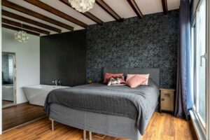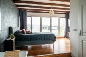 Loop je de trap op naar de zolderetage dan vind je hier 2 ruime slaapkamers waarvan één met een bad. Door de grote ramen heb je in deze kamer een heerlijke lichtinval.