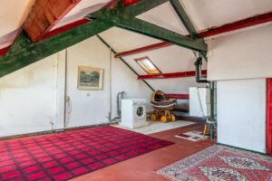 Via een vaste trap kom je op de ruime zolder. Hier bevindt zich de ketel en wasmachine- en drogeraansluiting. De zolder biedt veel mogelijkheden. Door een dakkapel kan je hier eenvoudig meer m2 woonoppervlak en daarmee een vijfde en zelfs een zesde slaapkamer creëren.