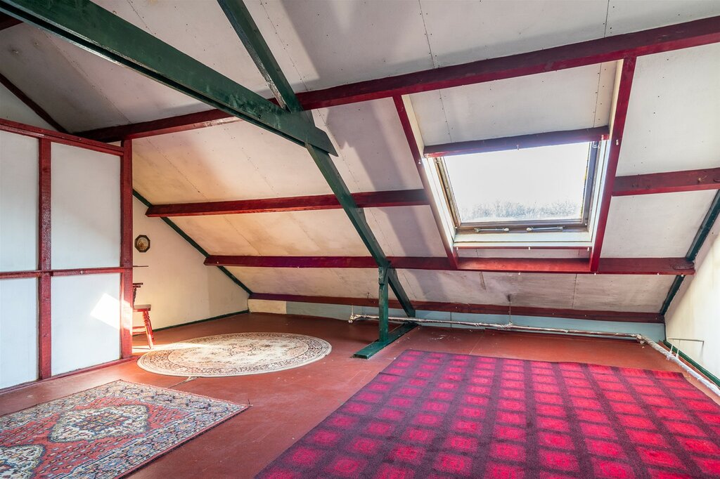 Via een vaste trap kom je op de ruime zolder. Hier bevindt zich de ketel en wasmachine- en drogeraansluiting. De zolder biedt veel mogelijkheden. Door een dakkapel kan je hier eenvoudig meer m2 woonoppervlak en daarmee een vijfde en zelfs een zesde slaapkamer creëren.