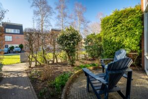 De woning heeft een fijne voortuin. Met de ligging op het zuiden en direct aan een plantsoen is dit echt een plekje waar je vaak zult gaan zitten. Door de openslaande deuren aan de voorzijde van de woning is het een verlengstuk van je woonkamer en daarmee de ideale plek voor een glaasje wijn in de avondzon.