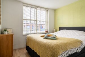 Aan de voorzijde van de woning bevinden zich nog twee kamers van 6 m2 en 12 m2. De grootste slaap-/werkkamer heeft door zijn plafondhoogte van ruim 3,4 meter een ruimtelijk en speels karakter. Deze kamer geeft toegang tot de extra gecreëerde ruimte van 10 m2 (voormalige vide) aan de voorzijde met optimale lichtinval door de grote raampartij. Dit is de ideale plek voor een werkruimte of hobbyruimte. Trek je deze ruimte liever bij een van de slaapkamers, dan kan dat natuurlijk ook.