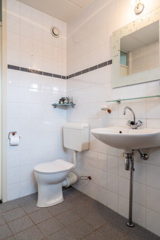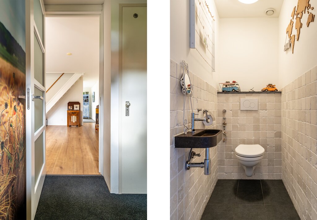 Tussen de woonkamer en de keuken bevindt zich het toilet. Ook deze is in 2013 volledig vernieuwd, ruim en voorzien van zwevend closet en fonteintje.