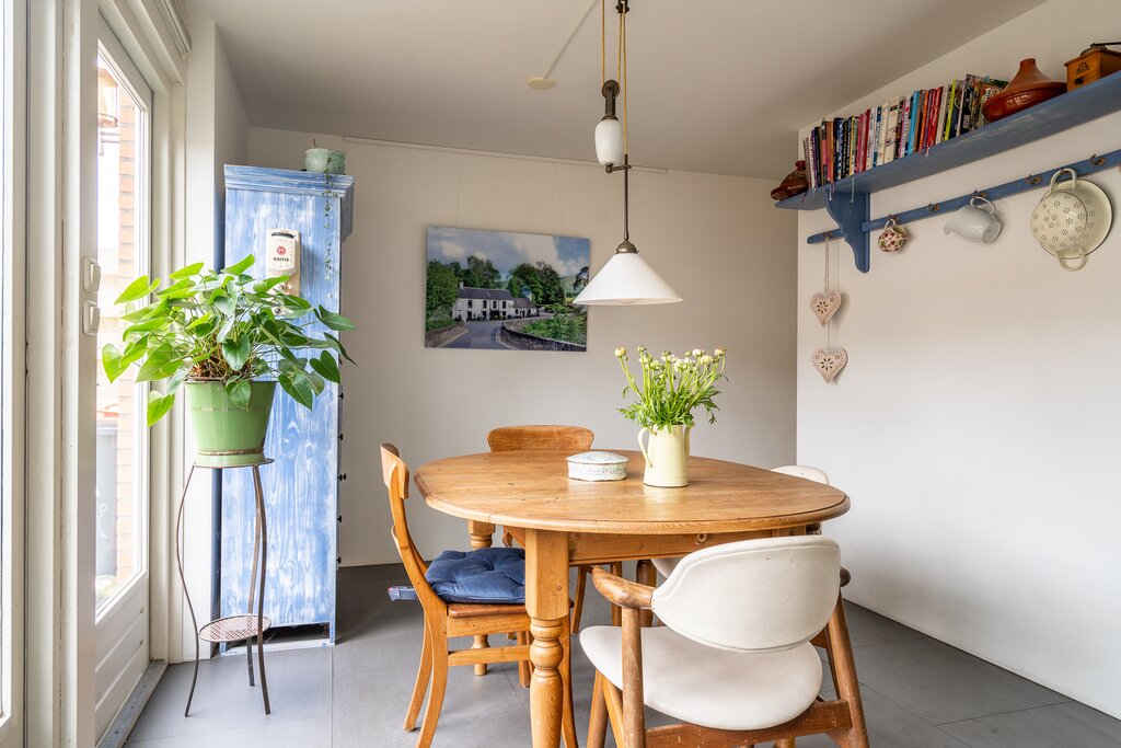 Door de ruime opzet heb je in de woonkamer de mogelijkheid om twee zitgedeeltes te creëren. Hoe fijn is het om te kunnen kiezen voor zitten met een boekje bij de open haard of om juist in de televisiehoek je favoriete film te kunnen kijken.