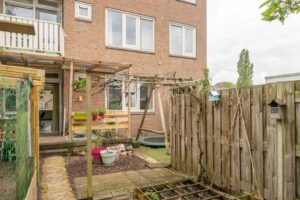 De tuin is prettig ruim en heeft een eigen achterom. De verschillende terrasjes en beplanting maken het echt gezellig en de ligging op de hoek geeft een vrij gevoel. Via de poort kom je direct bij de berging die bij het appartement hoort.