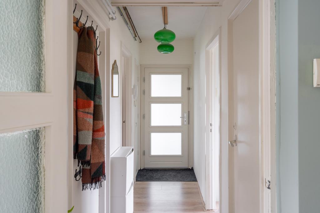 Via de entree kom je in de hal met meterkast. Vanuit de hal zijn alle ruimtes toegankelijk. De lichte woonkamer beschikt over gestuukte wanden en een nette laminaatvloer. De slaapkamer die grenst aan de woonkamer kan er eenvoudig bij worden getrokken zodat je daar een eetkamer van kunt maken. Daarmee betrek je dan ook meteen het balkon aan de voorzijde weer bij je leefruimte.