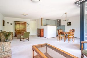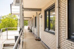 Via de afgesloten entree kom je in de centrale hal van het complex met brievenbussen en kun je kiezen tussen de lift of de trap. Op de tweede etage kom je uit op de galerij waar je het appartement treft. Vanuit de hal van het appartement zijn alle ruimtes toegankelijk. Wat opvalt is de ruime woonkamer van circa 45m2. Deze is heerlijk licht doordat de ramen over de breedte van het appartement zijn geplaatst. De ramen zijn voorzien van elektrische zonwering. Hier vind je ook het balkon op zuidwesten gelegen met zonnescherm waar je heerlijk kunt genieten. In de woonkamer is een nette open keuken voorzien van een combi-oven, koelkast en kookplaat. De woonkamer heeft voldoende plaats voor een ruime eethoek en meerdere zithoeken.