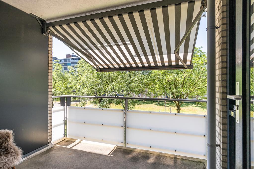 Via de afgesloten entree kom je in de centrale hal van het complex met brievenbussen en kun je kiezen tussen de lift of de trap. Op de tweede etage kom je uit op de galerij waar je het appartement treft. Vanuit de hal van het appartement zijn alle ruimtes toegankelijk. Wat opvalt is de ruime woonkamer van circa 45m2. Deze is heerlijk licht doordat de ramen over de breedte van het appartement zijn geplaatst. De ramen zijn voorzien van elektrische zonwering. Hier vind je ook het balkon op zuidwesten gelegen met zonnescherm waar je heerlijk kunt genieten. In de woonkamer is een nette open keuken voorzien van een combi-oven, koelkast en kookplaat. De woonkamer heeft voldoende plaats voor een ruime eethoek en meerdere zithoeken.
