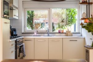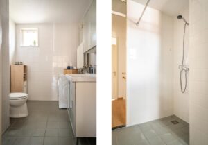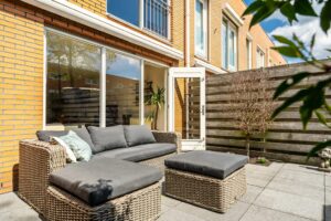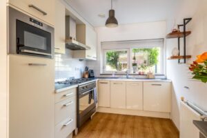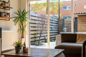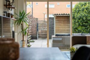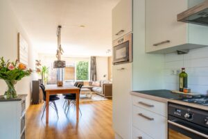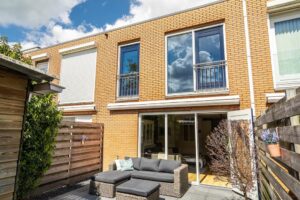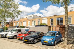 Dit leuke huis ligt aan een autovrij pad aan de voorzijde en parkeren kan je aan de achterkant. Je hebt daarmee geen zicht op de auto’s, maar wel het gemak dat je achter het huis je auto kwijt kunt.