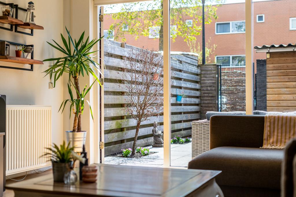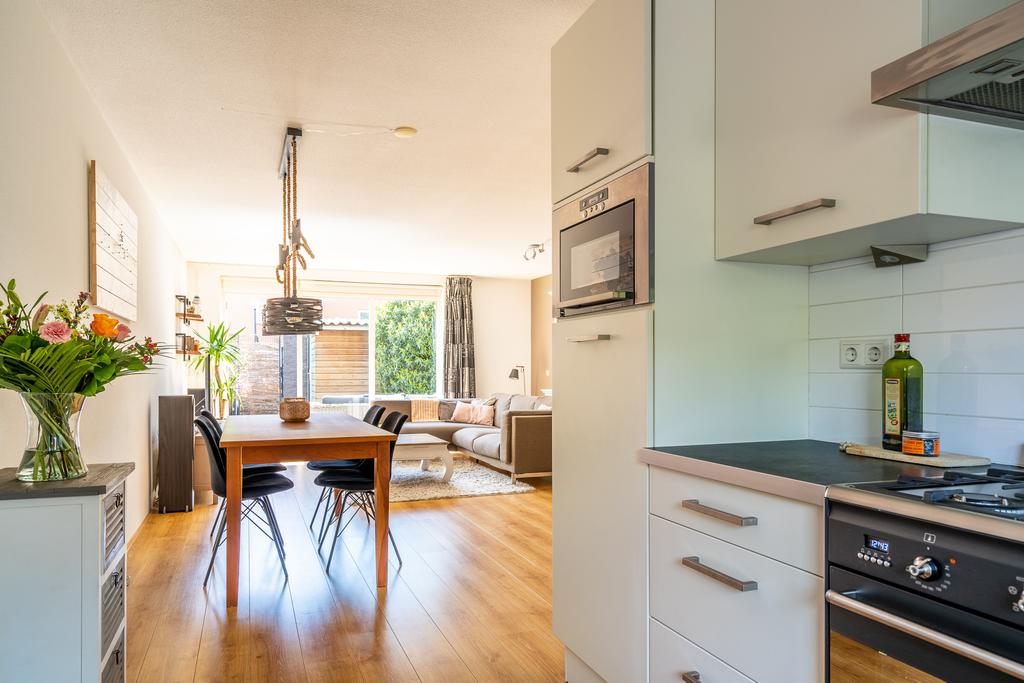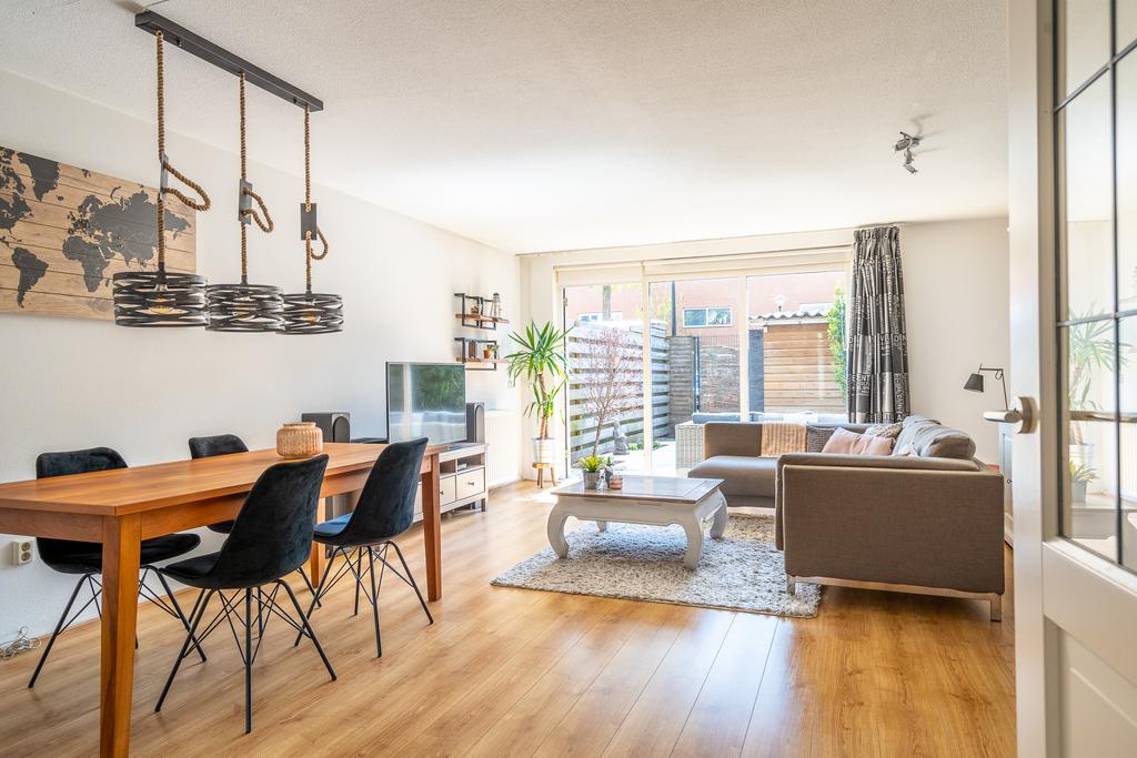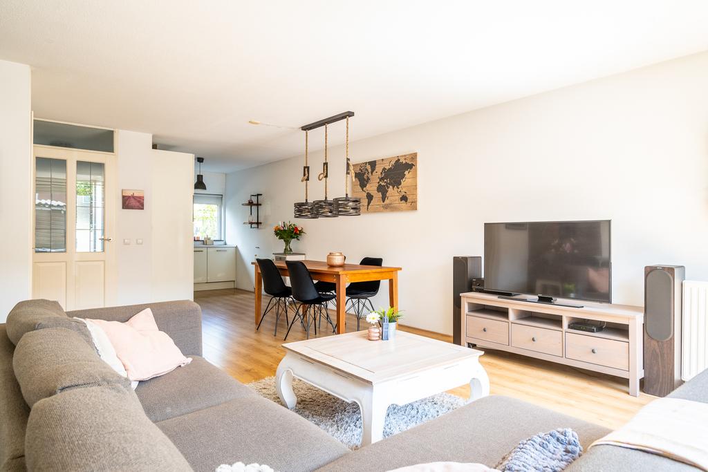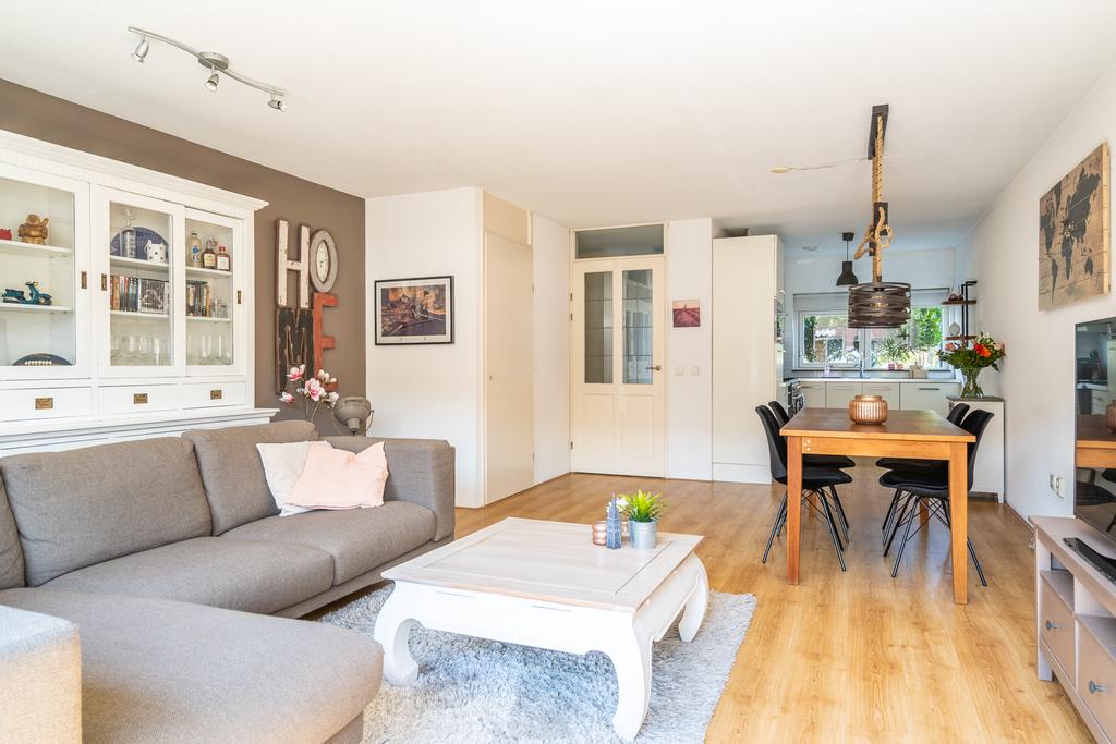 De woonkamer is ruim en licht door de grote glaspui aan de achterzijde. Ook zit hier een handige en ruime trapkast. Vanuit de woonkamer heb je toegang tot de zonnige tuin op het zuiden.