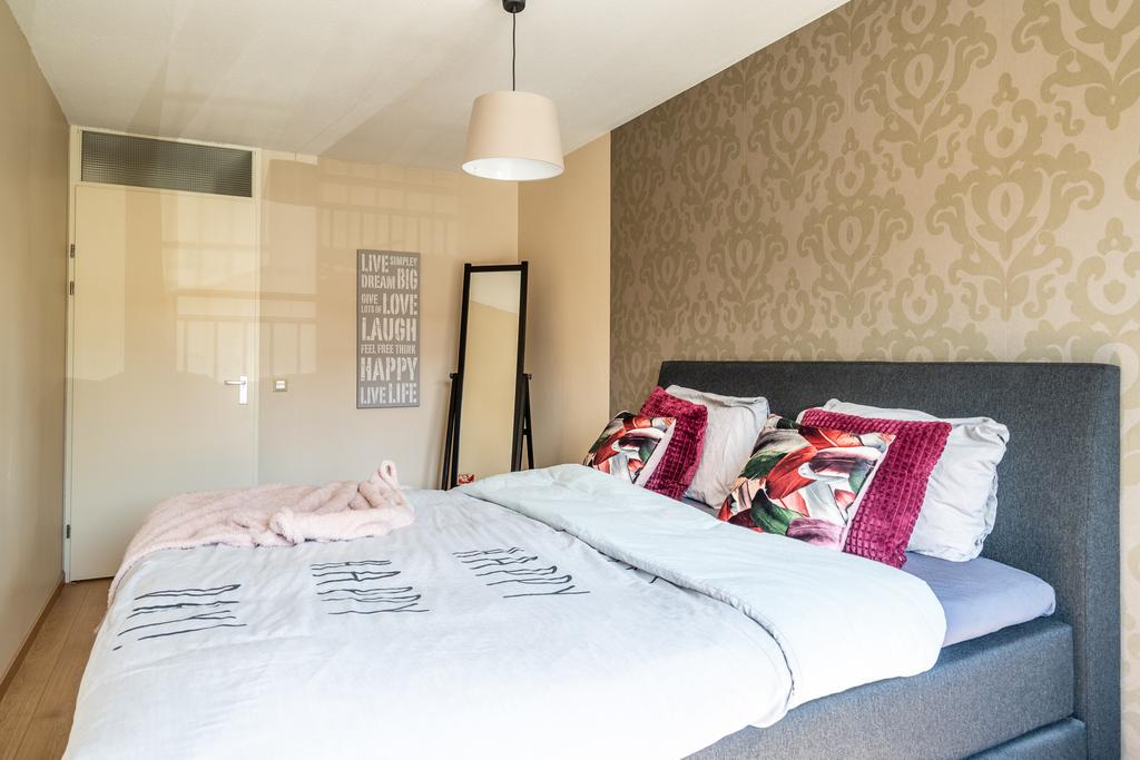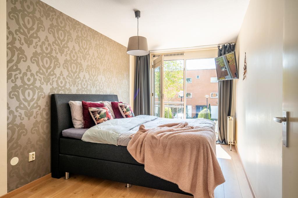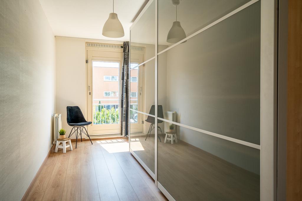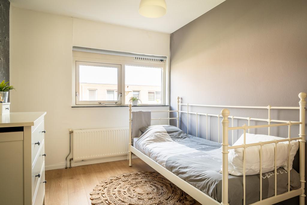 Deze verdieping telt drie goede slaapkamers van respectievelijk 13 m2, 10 m2 en 10 m2. De kamers aan de achterzijde hebben beiden een frans balkon. De gehele vloer op de 1e verdieping is uitgevoerd in laminaat. De badkamer is neutraal uitgevoerd, tot het plafond betegeld en is voorzien van een inloopdouche, wastafel, toilet en wasmachine aansluiting.