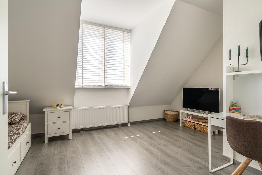 De gehele vloer op de 1e verdieping is uitgevoerd in laminaat. Alle wanden zijn netjes afgewerkt. Je hoeft hier niet meer te klussen.