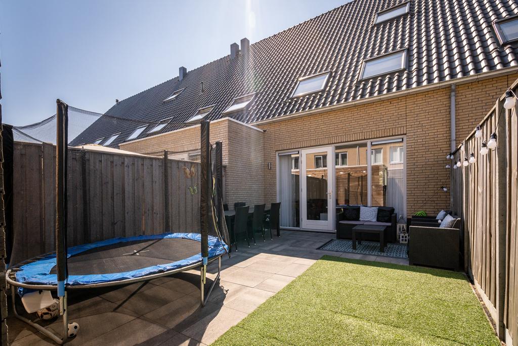 De tuin ligt op het noorden en is heerlijk om einde middag in de zon te genieten. De tuin is voorzien van keurige bestrating en kunstgras en achterop het perceel staat een houten berging met voldoende bergruimte voor fietsen en gereedschap. De tuin is via een achterom te bereiken.