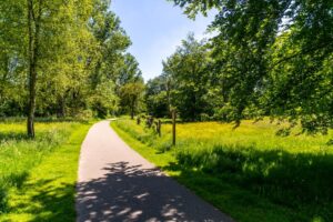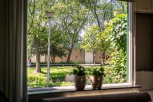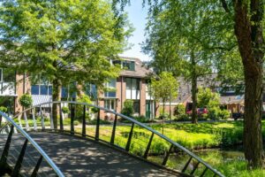 – Uitkijkend over het watertje, in een heerlijk rustige wijk