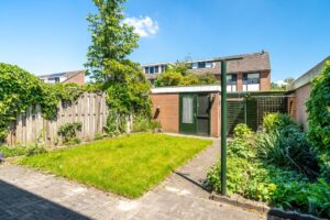 De voortuin is netjes aangelegd en keurig verzorgd. Aan de zijkant is een extra stukje grond aangekocht zodat je veel groen aan de voorzijde hebt. De achtertuin ligt op het oosten en biedt veel zon. De tuin is heerlijk vrij gelegen door de hoekligging, dus volop privacy! Achterin de tuin bevindt zich een ruime berging. Via de tuin kun je ook de garage betreden die haaks op het perceel staat. In de garage bevindt zich als verrassing nog een keldertje voor extra opslag. De garage is een perfecte plek voor een auto en gereedschap.