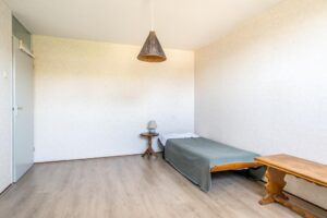 Via de trap in de hal kom je op de overloop met toegang tot 3 slaapkamers en de badkamer. De slaapkamers zijn alle drie ruim in opzet door de prettige breedte van de woning van maar liefst 6 meter. Aan de achterzijde bevinden zich twee slaapkamers van 14m2 en 9m2. De slaapkamer aan de voorzijde meet 13m2.