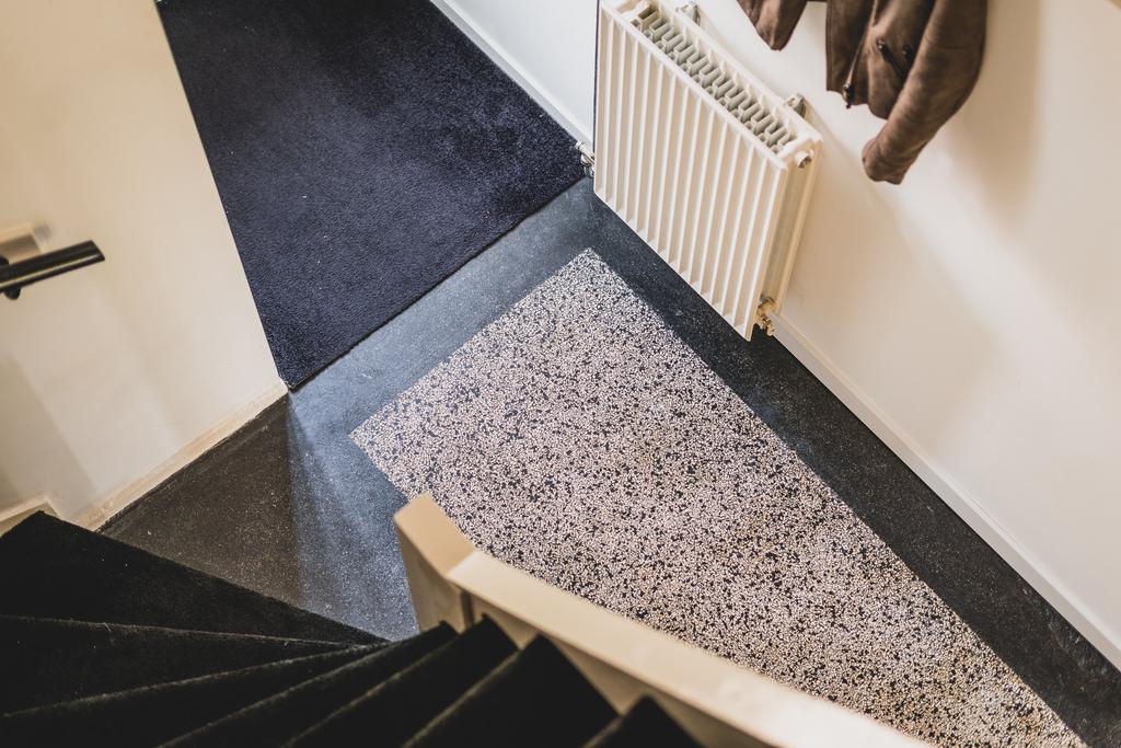 Bij binnenkomst in de hal zie en proef je de sfeer die deze woningen zo populair maakt; de granito vloer, de paneeldeuren en het hoge plafond geven veel sfeer. Het valt direct op dat de karakteristieke sfeer wordt gecombineerd met hedendaagse strakheid. De plafonds en wanden zijn glad gestuukt, de trap is bekleed met zwart tapijt. In de hal vind je een volledig vernieuwde meterkast, een mooi afgewerkt toilet (2015) en een handige bergkast onder de trap.