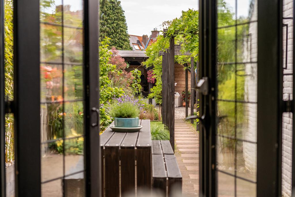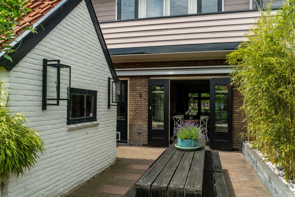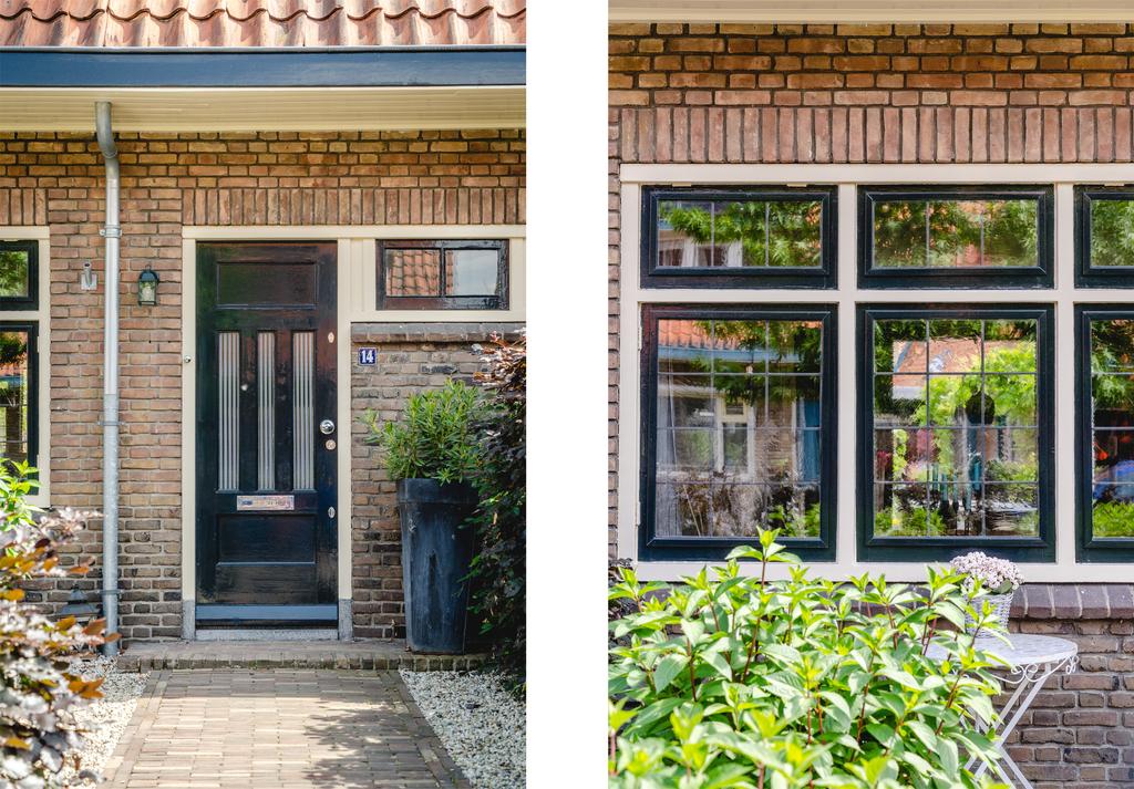 Via de fraai aangelegde tuin kom je bij de karakteristieke voorgevel. De gevel van de woning springt eruit met zijn fraaie glas-in-lood ramen. Voor het huis is het ideale plekje voor een bankje of picknicktafel. Hier geniet je van de middag- en avondzon terwijl je kinderen lekker op straat spelen.