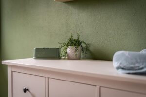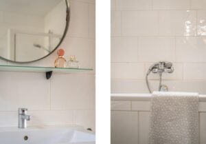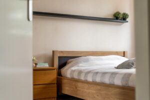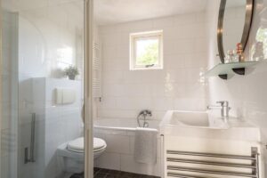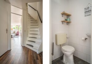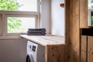 Op de voorzolder vind je een handige waskamer met wasmachine en droger aansluiting. Een grote steigerhouten kastenwand tot aan het plafond zorgt voor maximale opbergruimte voor alle bad- en bedlinnen of je seizoenkleding.