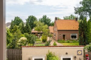 De tuin is vrij gelegen aan de achterzijde. Achter de woning ligt namelijk een breed pad en vrijstaande oude boerderijen wat zorgt voor een sfeervol uitzicht en bijzondere woonbeleving.