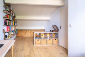 Op deze verdieping bevindt zich tevens de 4e slaapkamer met optimale lichtinval door de grote ramen. Deze kamer is ideaal als thuiswerkplek, muziekruimte of atelier. Met een extra velux-raam of dakkapel aan de voorzijde creëer je hier eenvoudig zelfs nog een vijfde slaapkamer. Mogelijkheden genoeg dus met zoveel ruimte in je huis!
