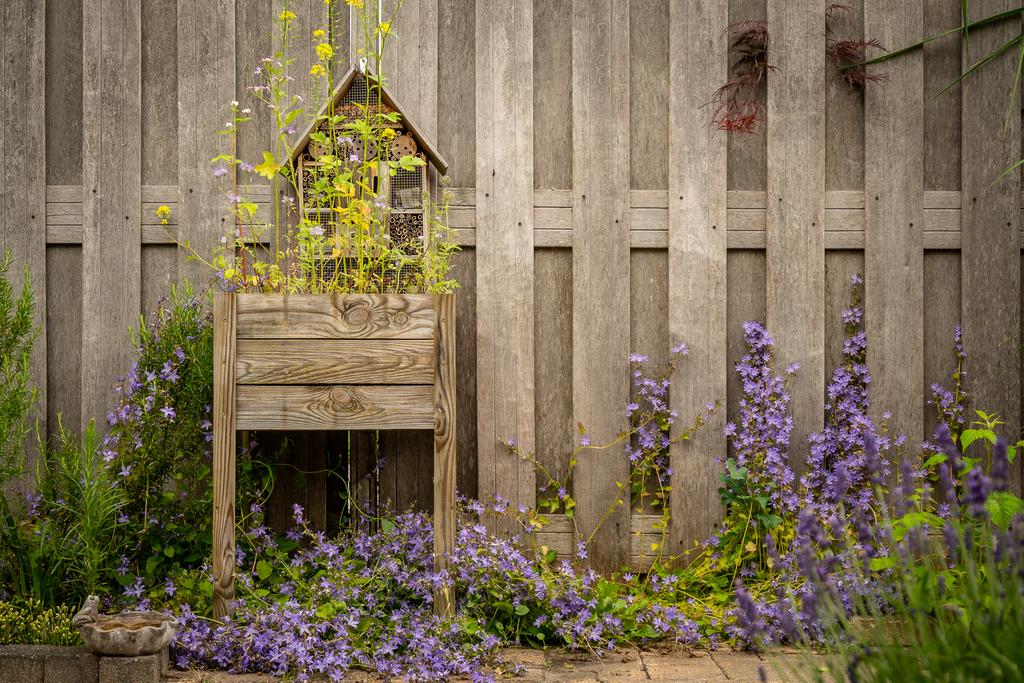 In de tuin staat een handige stenen berging met erachter een overkapping om de fietsen droog te kunnen stallen. Zo hou je genoeg ruimte over in de berging zelf voor tuingereedschap en andere spullen.