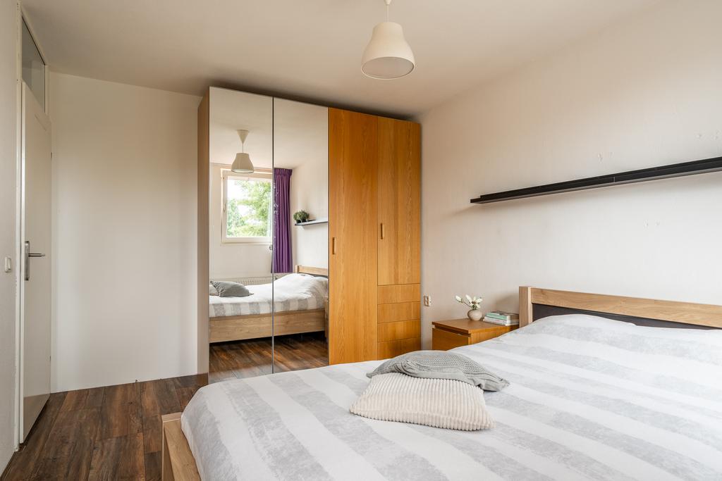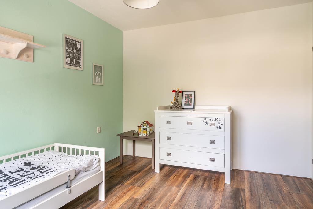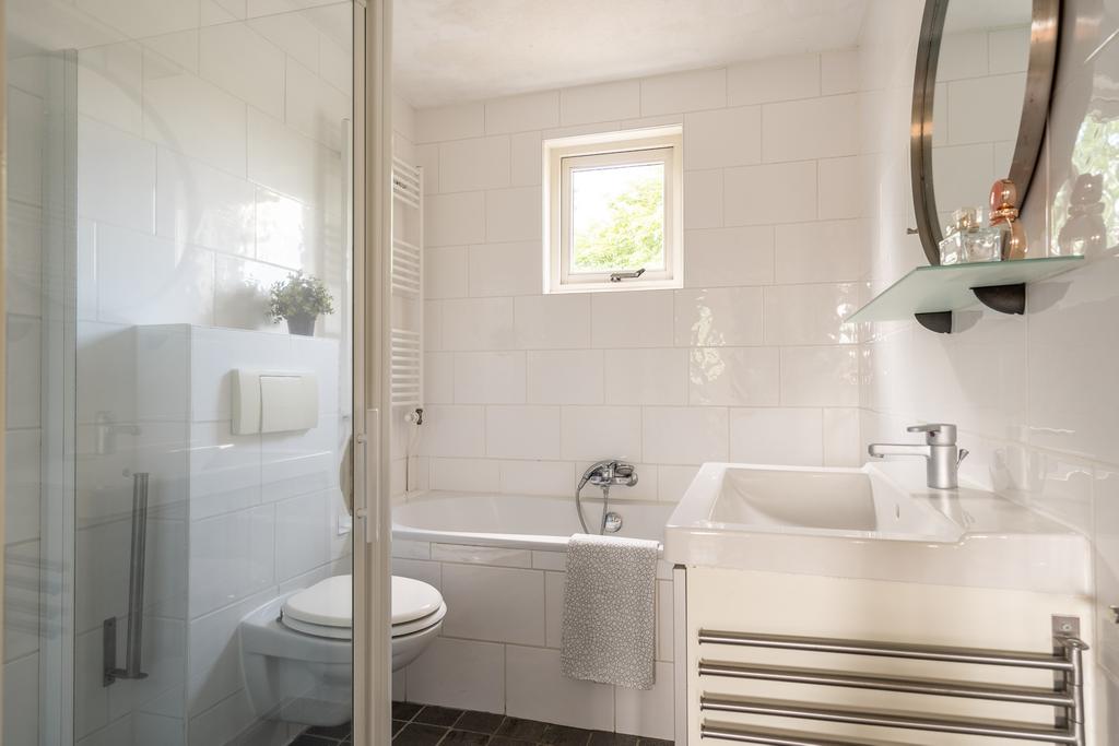 Met de vaste trap in de hal kom je op de eerste verdieping. Hier vind je drie grote slaapkamers (13, 11 en 6 m2) en de badkamer. Alle slaapkamers hebben prettige grote ramen en eenzelfde nette laminaatvloer als op de begane grond. De slaapkamers aan de achterzijde hebben een heel vriendelijk uitzicht; je kijkt namelijk uit op een oude boerderijtje met veel groen en een moestuin. De badkamer is ruim en is dan ook compleet uitgerust met bad, douchecabine, hangend toilet en een wastafel. Het raam zorgt voor prettige daglichttoetreding en de nodige ventilatie.