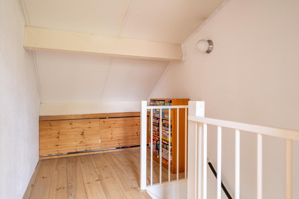 Met een vaste trap kom je bij de tweede verdieping. Door de volledig opgemetselde voorgevel (circa 4 meter) heeft deze verdieping veel hoogte. Dit brengt een zee van licht naar binnen. Onder de schuine kap is veel extra bergruimte aanwezig.