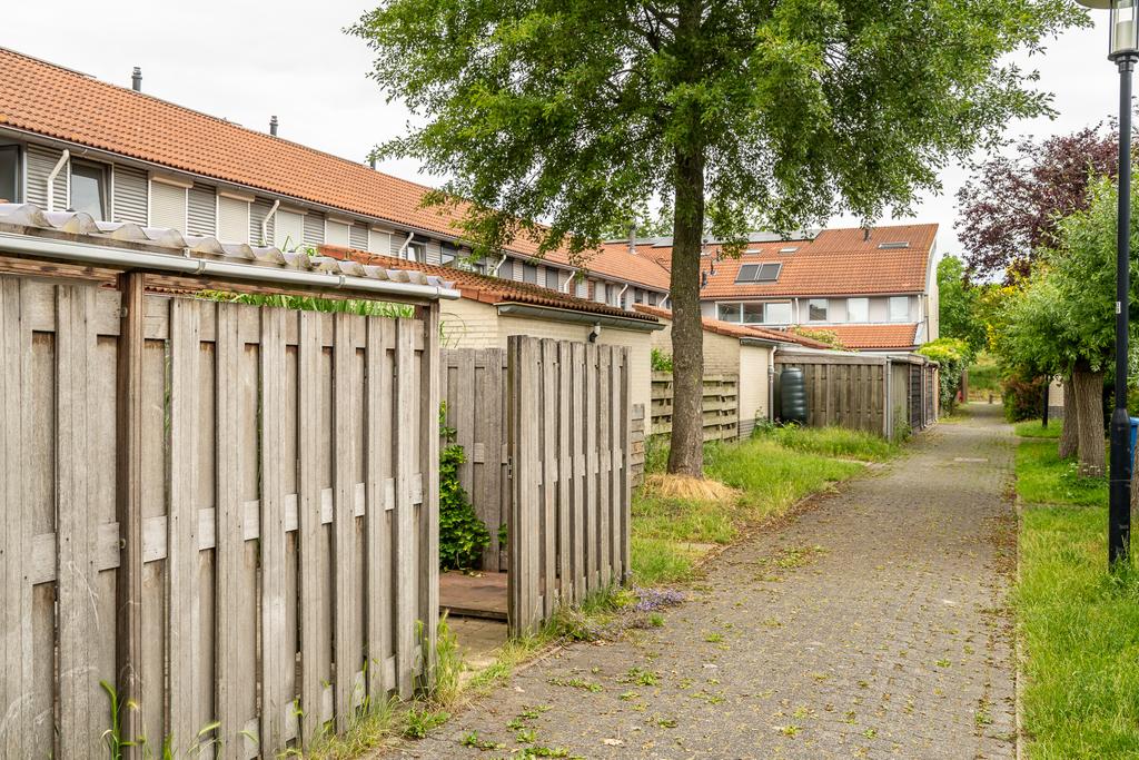 De tuin is vrij gelegen aan de achterzijde. Achter de woning ligt namelijk een breed pad en vrijstaande oude boerderijen wat zorgt voor een sfeervol uitzicht en bijzondere woonbeleving.