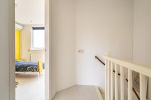 Via de trap in de woonkamer kom je op de derde volwaardige woonverdieping. Hier bevinden zich drie ruime, smaakvol ingerichte slaapkamers. Ook vind je hier de badkamer. De badkamer is ruim en in neutrale tinten uitgevoerd. In de badkamer is volop ruimte voor zowel een bad, douche, toilet als dubbele wastafel.