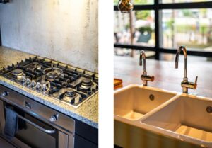 De sfeervolle woonkeuken bevindt zich aan de achterkant en heeft een prachtige, grote glaspui met schuifdeur naar het terras aan de achterzijde. Er ligt een fraaie gietvloer, strak en goed onderhouden. De woonkeuken is voorzien van luxe inbouwapparatuur zoals vaatwasser, koelkast, 5 pits gasfornuis, afzuigkap en een grote oven. Er is meer dan genoeg ruimte voor een grote eettafel. Dit is met recht de ideale plek om lange avonden te tafelen met vrienden of familie.