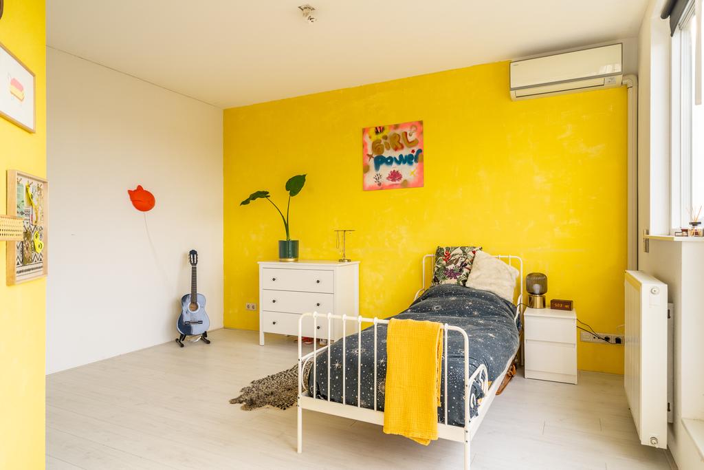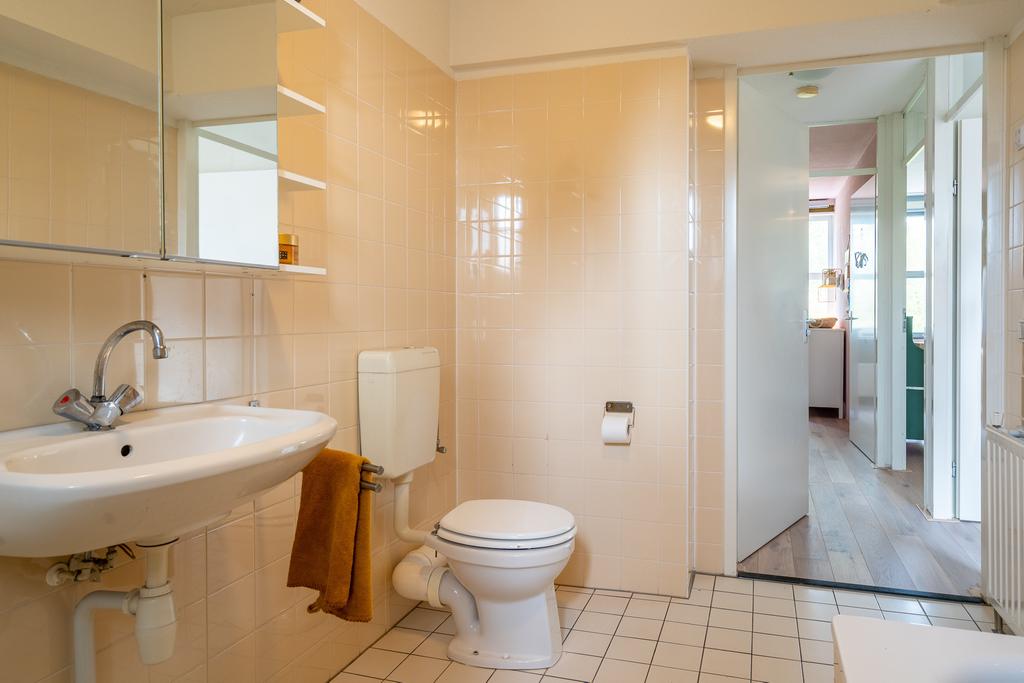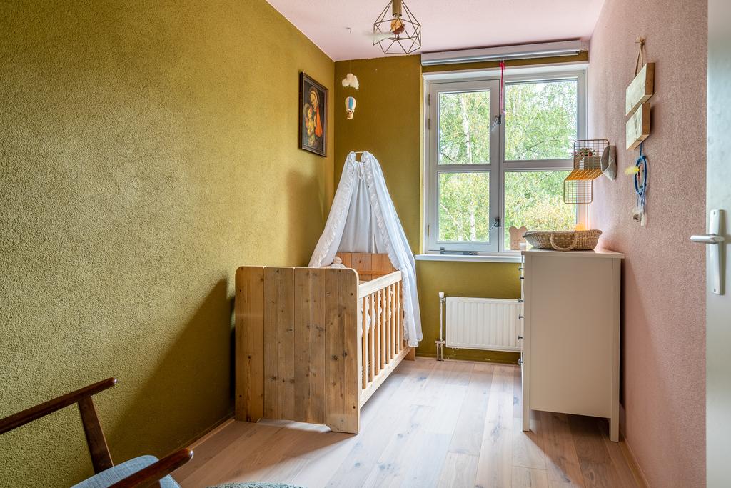 Via de trap in de woonkamer kom je op de derde volwaardige woonverdieping. Hier bevinden zich drie ruime, smaakvol ingerichte slaapkamers. Ook vind je hier de badkamer. De badkamer is ruim en in neutrale tinten uitgevoerd. In de badkamer is volop ruimte voor zowel een bad, douche, toilet als dubbele wastafel.