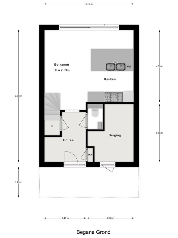 Aan de voorzijde van het huis ligt de eigen parkeerplaats. Je hoeft niet meer te zoeken naar een parkeerplekje. Naast de entree zit de berging met voldoende ruimte voor fietsen en gereedschap.