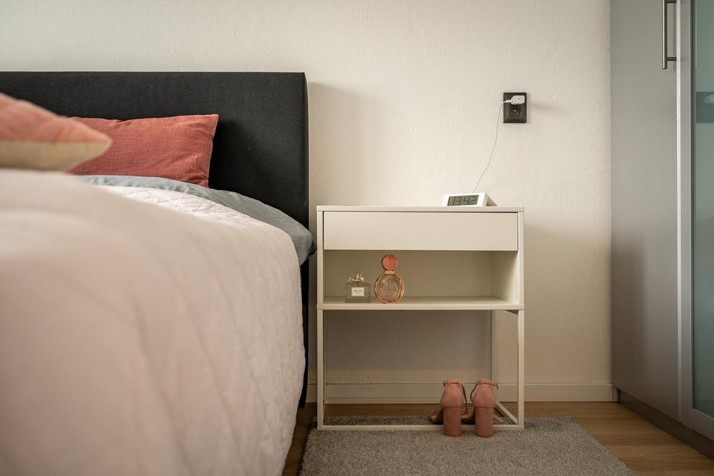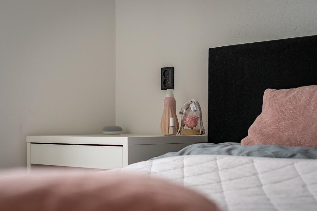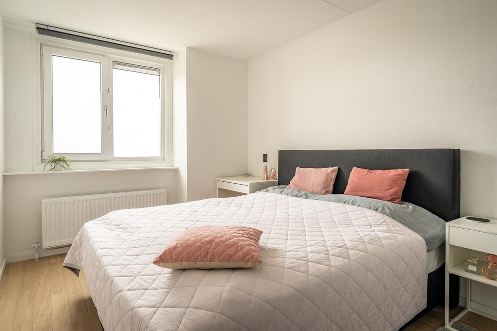 Aan de achterzijde van het appartement liggen de twee slaapkamers van 12m2 en van 6m2. De grote slaapkamer heeft voldoende ruimte voor een mooie garderobekast.