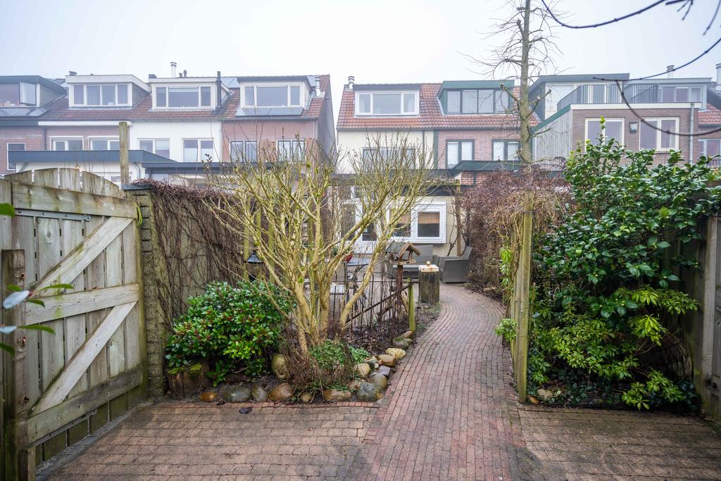Op nummer 43 vind je dit ruime huis, uitgebouwd en opgebouwd en daarmee 125 m2 groot. Een extra plus is de grote diepe tuin op het zuiden met heerlijk beschutte plekjes en verschillende terrassen zo aangelegd dat je er heerlijk in kan dwalen. Door de fraaie beplanting staat de tuin van voor- tot najaar in bloei.