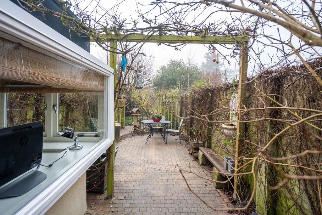 In de voortuin, met klinkers bestraat, staan 2 mooie bolcatalpa’s. Het is het ideale plekje voor een leuk bankje. Met een kop koffie in de hand praat je hier gezellig bij met je buren of hou je een oogje in het zeil als je kinderen op straat spelen, hier kan dat nog.