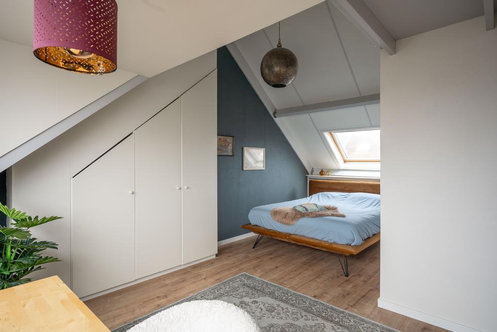 De slaapkamers zijn beide van goed formaat met 11 en 13 m2. Beide kamers zijn voorzien van een mooie laminaat vloer. De slaapkamer aan de voorzijde kijkt uit op de oude geveltjes in de straat. Aan de achterzijde kijk je heerlijk weg over de wijk.