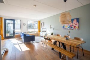 De grote ramen in de achter-pui zorgen voor mooie en maximale lichtinval in de woonkamer. Ook heb je hierdoor fijn contact met de tuin en zet je hier als het voorjaarszonnetje naar binnen schijnt graag de deur open om van de eerste momenten buiten te kunnen genieten.