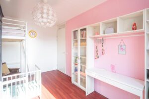 Aan de voorzijde heb je toegang tot een zeer ruime slaapkamer over de volle breedte van de woning. De kamer meet maar liefst 14 m2; hier kan je een groot bed kwijt en de kamer beschikt al over een keurige, grote op maat gemaakte inbouwkast. Aan de achterzijde bevinden zich de tweede en de derde slaapkamer. Ook deze twee kamers zijn van prettig formaat. De kleinste kamer is 7 m2. Deze kamer is momenteel in gebruik als werkkamer. Door de afmetingen is deze kamer ook prima geschikt als slaapkamer; er past ook over de breedte een bed. De derde slaapkamer is weer ruim met 13 m2. Beide slaapkamers kijken weg over de tuin en de woonwijk.