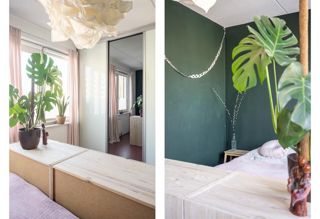 Aan de voorzijde heb je toegang tot een zeer ruime slaapkamer over de volle breedte van de woning. De kamer meet maar liefst 14 m2; hier kan je een groot bed kwijt en de kamer beschikt al over een keurige, grote op maat gemaakte inbouwkast. Aan de achterzijde bevinden zich de tweede en de derde slaapkamer. Ook deze twee kamers zijn van prettig formaat. De kleinste kamer is 7 m2. Deze kamer is momenteel in gebruik als werkkamer. Door de afmetingen is deze kamer ook prima geschikt als slaapkamer; er past ook over de breedte een bed. De derde slaapkamer is weer ruim met 13 m2. Beide slaapkamers kijken weg over de tuin en de woonwijk.