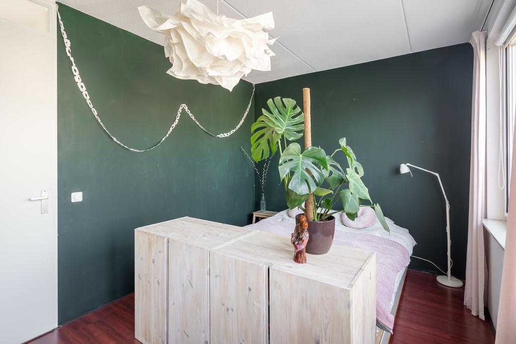 De kamer aan de voorzijde is 14 m2 groot en plezierig licht door de grote raampartij. Vanuit deze kamer kom je met een vlizotrap op de bergzolder: een ideale plek om spullen weg te zetten.