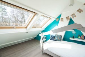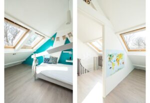 Door de grote dakkapel en maar liefst 4 grote Velux-ramen is deze verdieping ruim en heerlijk licht. Ook hier ligt weer een keurige laminaat. Op de voorzolder bevindt zich de cv-ketel, een extra wastafel en is er ruimte voor een werkplek. Tenslotte vind je hier de gezellige en ruime derde slaapkamer.