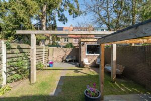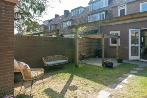De tuin is omsloten, heeft een achterom en is een aangename plek om te genieten van rust en privacy. De tuin ligt op het noordoosten, echter door de diepte van het perceel heb je zowel ’s ochtends als ’s avonds volop zon in de tuin. In de tuin bevindt zich tenslotte de berging met genoeg ruimte voor fietsen en tuinspullen.