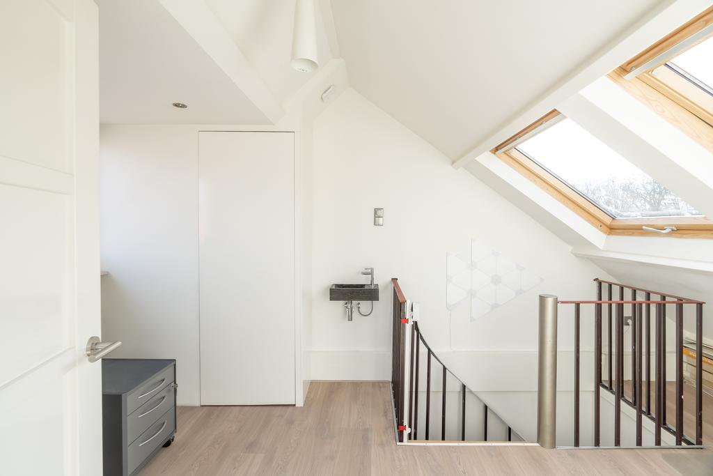 Door de grote dakkapel en maar liefst 4 grote Velux-ramen is deze verdieping ruim en heerlijk licht. Ook hier ligt weer een keurige laminaat. Op de voorzolder bevindt zich de cv-ketel, een extra wastafel en is er ruimte voor een werkplek. Tenslotte vind je hier de gezellige en ruime derde slaapkamer.